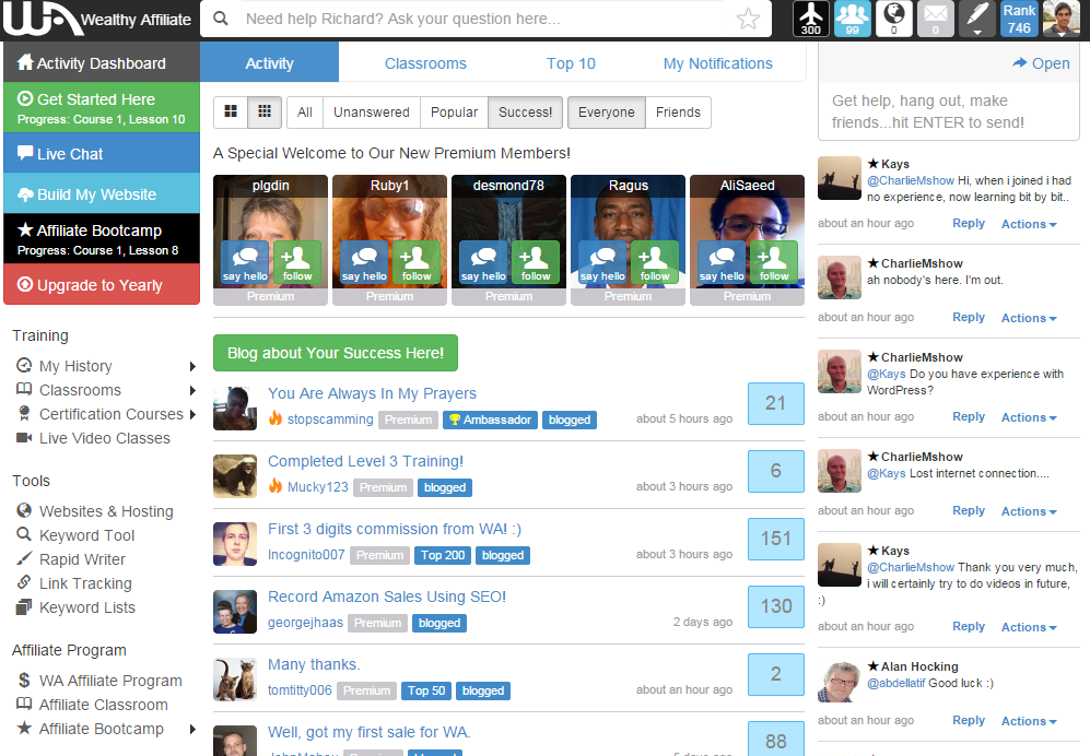 The basis of Wealthy Affiliates is its concentration on training and empowerment. Their objective it to provide the technology, platform and knowledge for anyone to be successful online. A core component of what they offer is a community where members communicate via blog posts, live chat, feedback, Q & A, providing the ability for everyone to succeed.